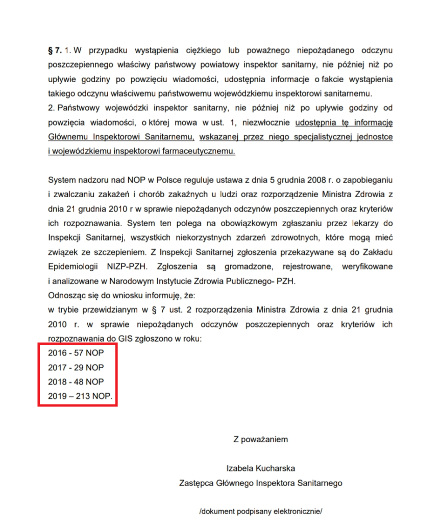 W ilu przypadkach przeprowadzonych przez URPL analiz związku przyczynowo-skutkowego między NOP, a podaniem szczepionki, dotyczących wszystkich przypadków ciężkich NOP zgłoszonych w latach 2020-2023 oraz w roku 2024 do miesiąca września włącznie (7091 przypadków ciężkich NOP zgodnie z pismem DML-MLP.460.31.2024.MN.1), określono związek przyczynowo-skutkowy między NOP, a podaniem szczepionki jako: