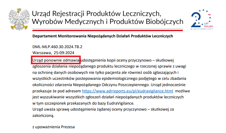 W związku ze zignorowaniem większości pytań, które zadałem we wniosku z dnia 15-10-2024 i na które nie otrzymałem żadnej odpowiedzi pismem Organu z dnia 28-10-2024 sygn. DML-MLP.460.31.2024.MN.2, wzywam Organ do uzupełnienia odpowiedzi o informacje, których Organ mi nie udzielił, ignorując większość treści mojego wniosku z dnia 15-10-2024.