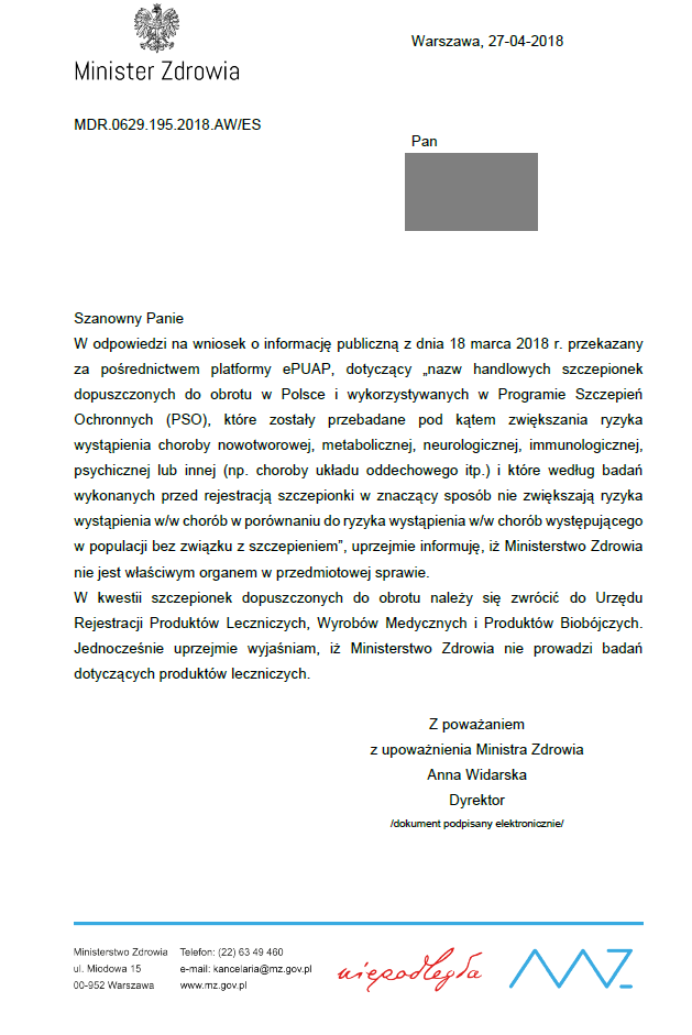 Odpowiedź przyszła tym razem już po kilku dniach i wygląda ona tak: