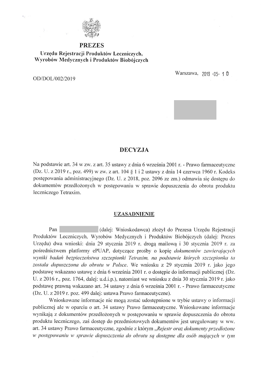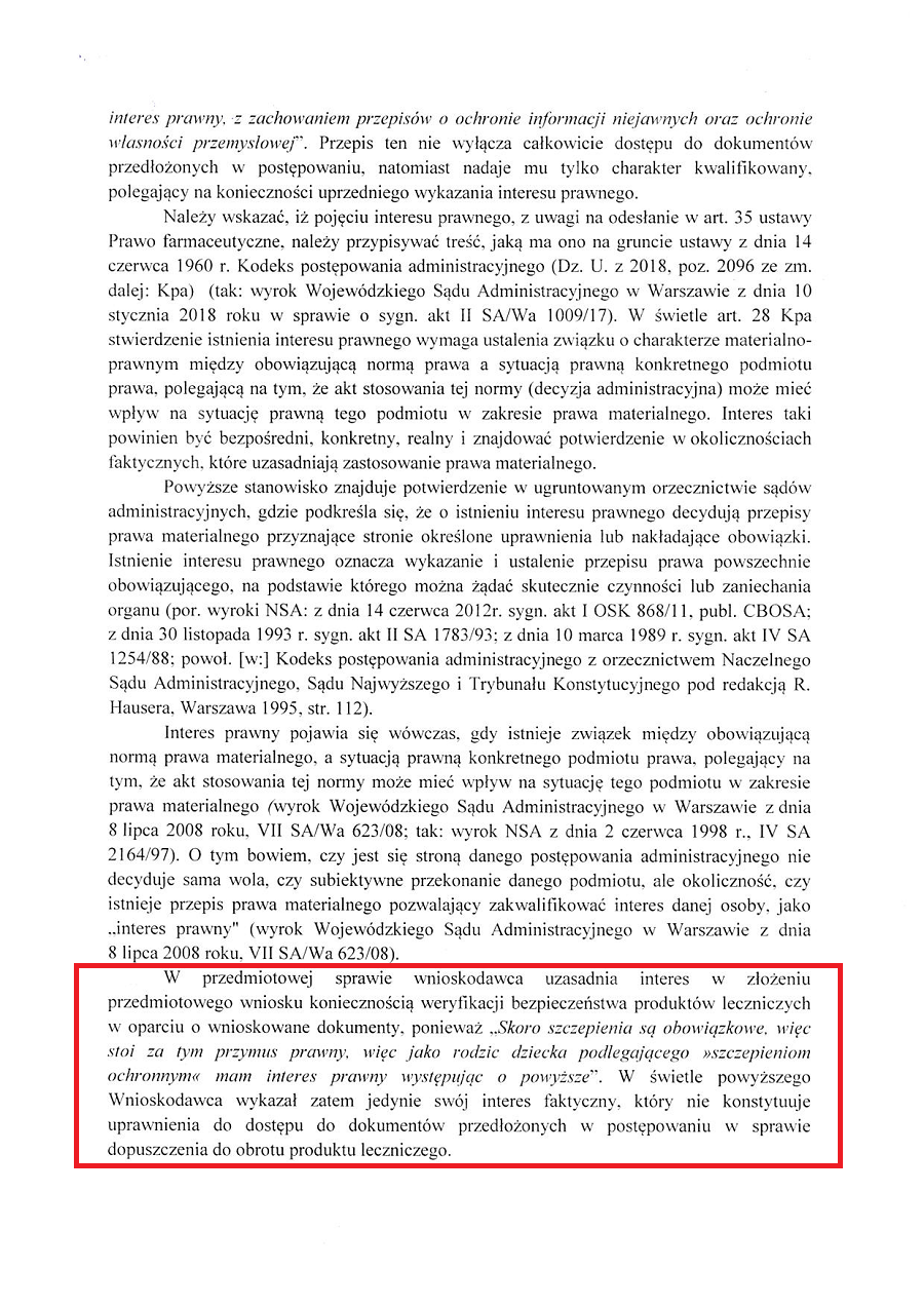 Otóż tu jest jeszcze śmieszniej, bo aby się dowiedzieć, które ze szczepionek podawanych obecnie przymusowo polskim dzieciom są w tej chwili w badaniach fazy IV, musicie się wykazać… „interesem prawnym”.