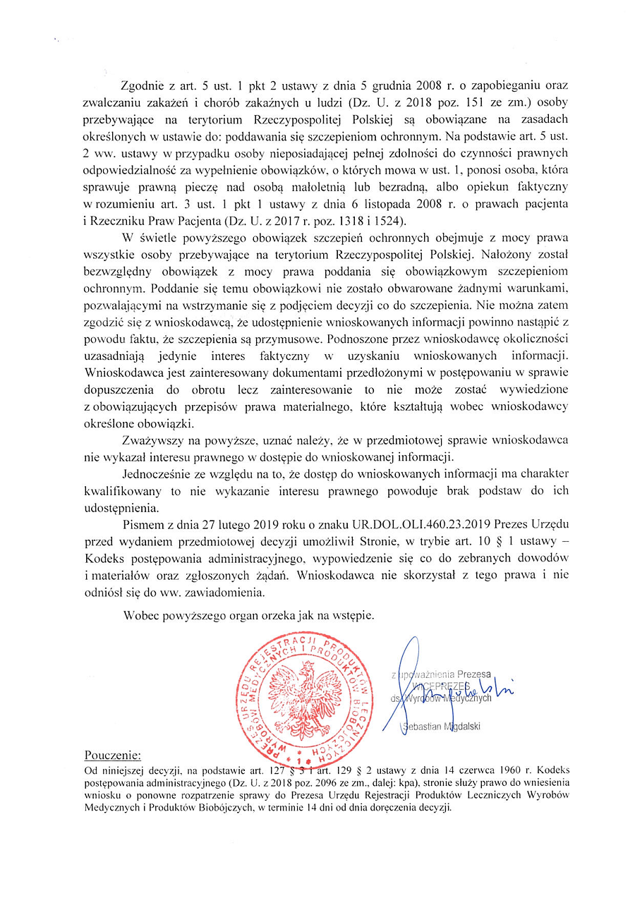 Jeśli uda Ci się przekonać URPL, że masz „interes prawny” aby się dowiedzieć, które ze szczepionek podawanych obecnie w ramach PSO przechodzą właśnie badania kliniczne fazy IV, to koniecznie daj znać na maila kontakt@szczepienie.info 🙂