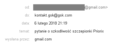 A oto komplet: przykładowe pytanie do GSK o szczepionkę Priorix i odpowiedź GSK.