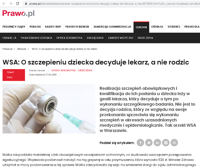 W najbliższych dniach „wiodące media” będą się pewnie chętnie ekscytować najnowszym wyrokiem WSA w Warszawie, który podtrzymał grzywnę za „nieszczepienie”, bo to jest kolejna doskonała okazja do postraszenia rodziców obawiających się powikłań poszczepiennych.