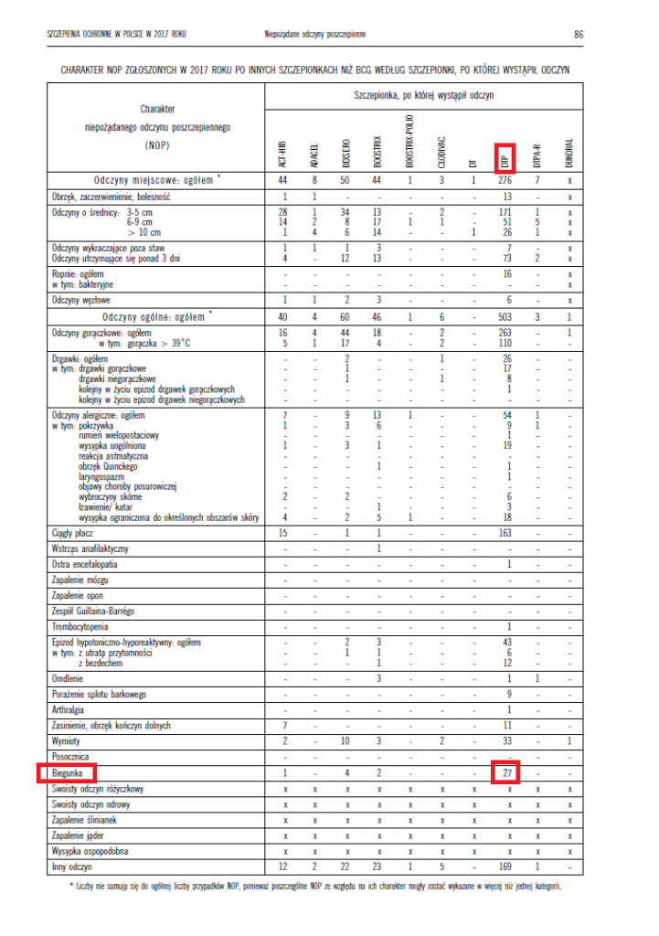 Na przykład PZH uznaje, że biegunka po szczepieniu DTP, to NOP:
