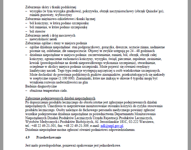 Jest to o tyle ciekawe, że dokumentacja szczepionki DTP nie wspomina ani słowem o biegunce, jako niepożądanej reakcji po szczepieniu. Z zaburzeń układu pokarmowego producent wymienia jedynie nudności i wymioty: