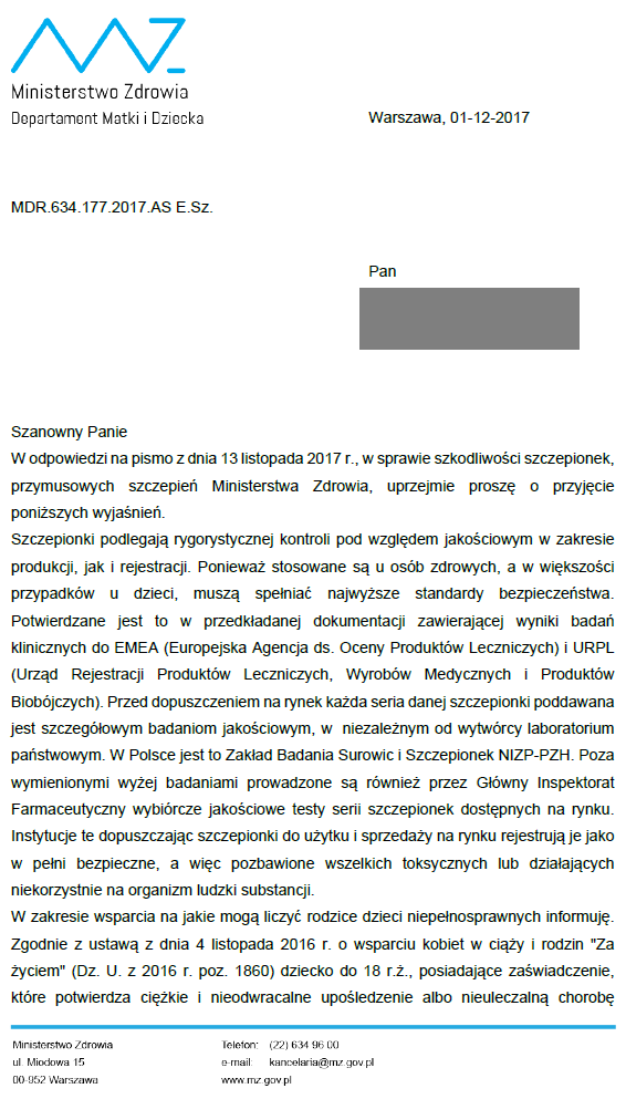 Niestety Ministerstwo ani słowem nie wyjaśnia, na jaką pomoc mogą liczyć rodzice dziecka trwale upośledzonego w wyniku podania mu obowiązkowej szczepionki „ochronnej”. Jest natomiast pewne, że takie dziecko „nie łapie się” nawet na te 4000zł, bo urodziło się zdrowe i dopiero podanie mu szczepionki na zawsze zniszczyło jego życie, ponieważ doszło do „ciężkiego niepożądanego odczynu poszczepiennego”…