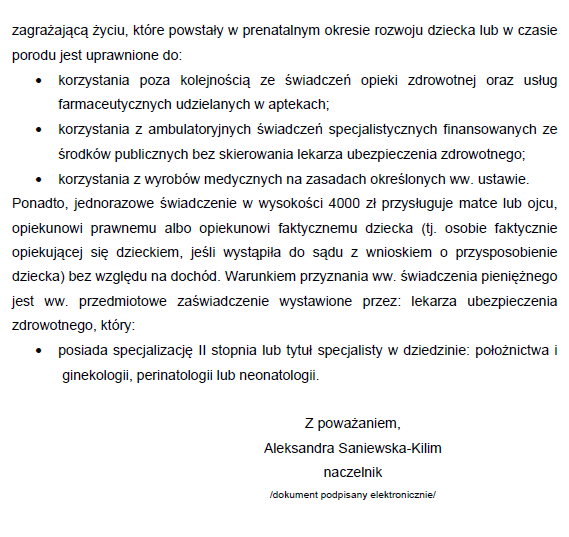 A więc w odpowiedzi na powyższe, Ministerstwo Zdrowia wyjaśnia, dlaczego w Polsce warto mieć dzieci i na jaką pomoc mogą liczyć rodzice, gdy przytrafi się tragedia trwałej niepełnosprawności dziecka.