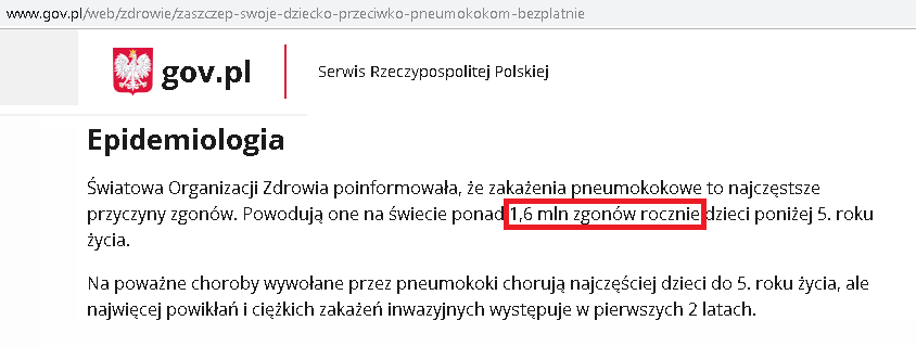 To może sprawdźmy, jak straszne są te pneumokoki, ale w Polsce, a nie w Afryce i ile dzieci zabijały do tej pory co roku w Polsce, a nie w Afryce.