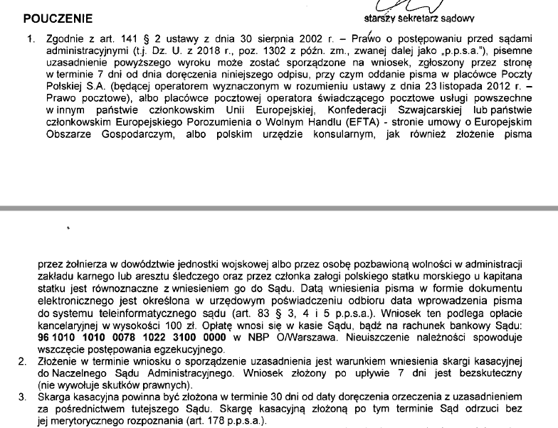 Teraz mam 7 dni na złożenie wniosku o uzasadnienie, aby poznać motywy, które kierowały sądem wydającym takie orzeczenie. No i trzeba zapłacić kolejną stówkę do kasy sądu, bo uzasadnienie nie jest za darmo. 🙂