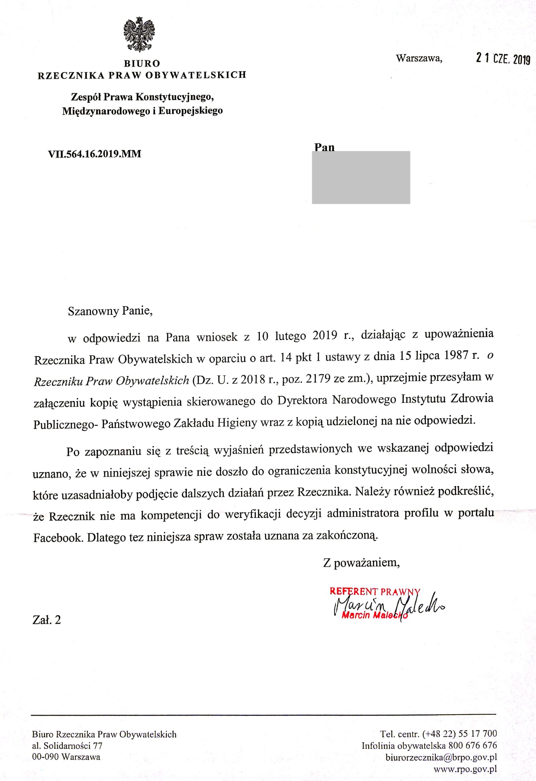 Opublikowano 2019-06-28 at 1758 × 2560 in Rzecznik Praw Obywatelskich wspiera cenzurę na profilu PZH szczepieniA.info.