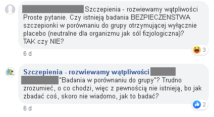 Żeby nie szukać daleko – profil szczepienie.info oczywiście ma na profilu „Szczepienia – rozwiewamy wątpliwości” blokadę – właśnie za zadawanie tam takich pytań. 🙂