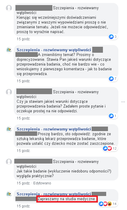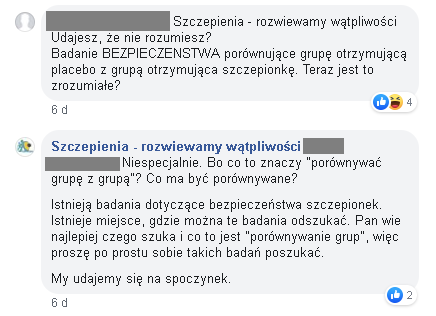 Trudno uwierzyć, że osoby prowadzące profil „Szczepienia – rozwiewamy wątpliwości” są aż tak mało inteligentne, że nie rozumieją tego, co się do nich pisze.