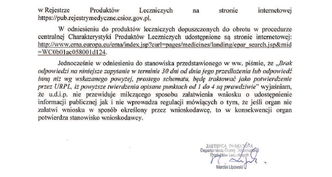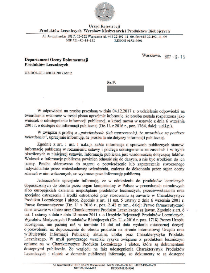 W otrzymanej odpowiedzi, Urząd Rejestracji Produktów Leczniczych nie zaprzeczył, że: